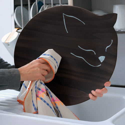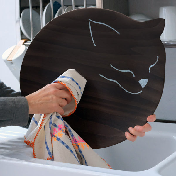 Félix est un chat au pelage sombre et à l’allure calme, mais ne vous laissez pas tromper par son air paisible : il est toujours prêt à rendre service. Grand plateau en bois moulé, il transporte verres, assiettes et théières d’une pièce à l’autre sans rechigner, le tout avec une élégance naturelle.